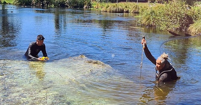 With the support of local iwi, Ngati Rangiwewehi, and our wider community, we are taking a hands-on approach to restoring this environment. During our Annual Clean-Up, our team of dedicated volunteers will be in the water working to remove the majority of Lagarosiphon from the spring through careful, controlled eco-gardening methods.